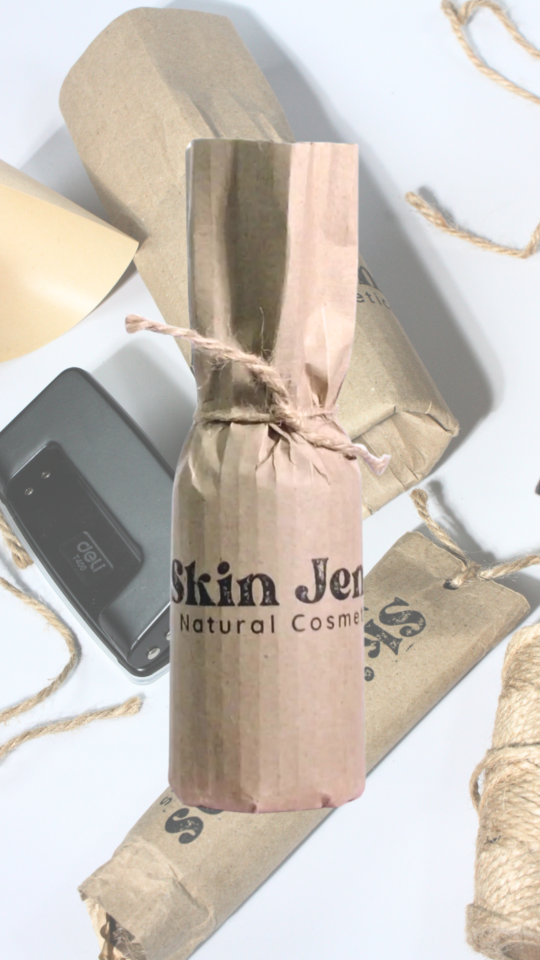 - Recyclable glass and aluminium bottles, aluminium tubes, and plastic tops